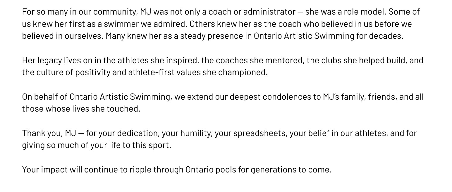 testKKKD OAS Remembers Mary Jane (MJ) Ling - Ontario Artistic Swimming Body